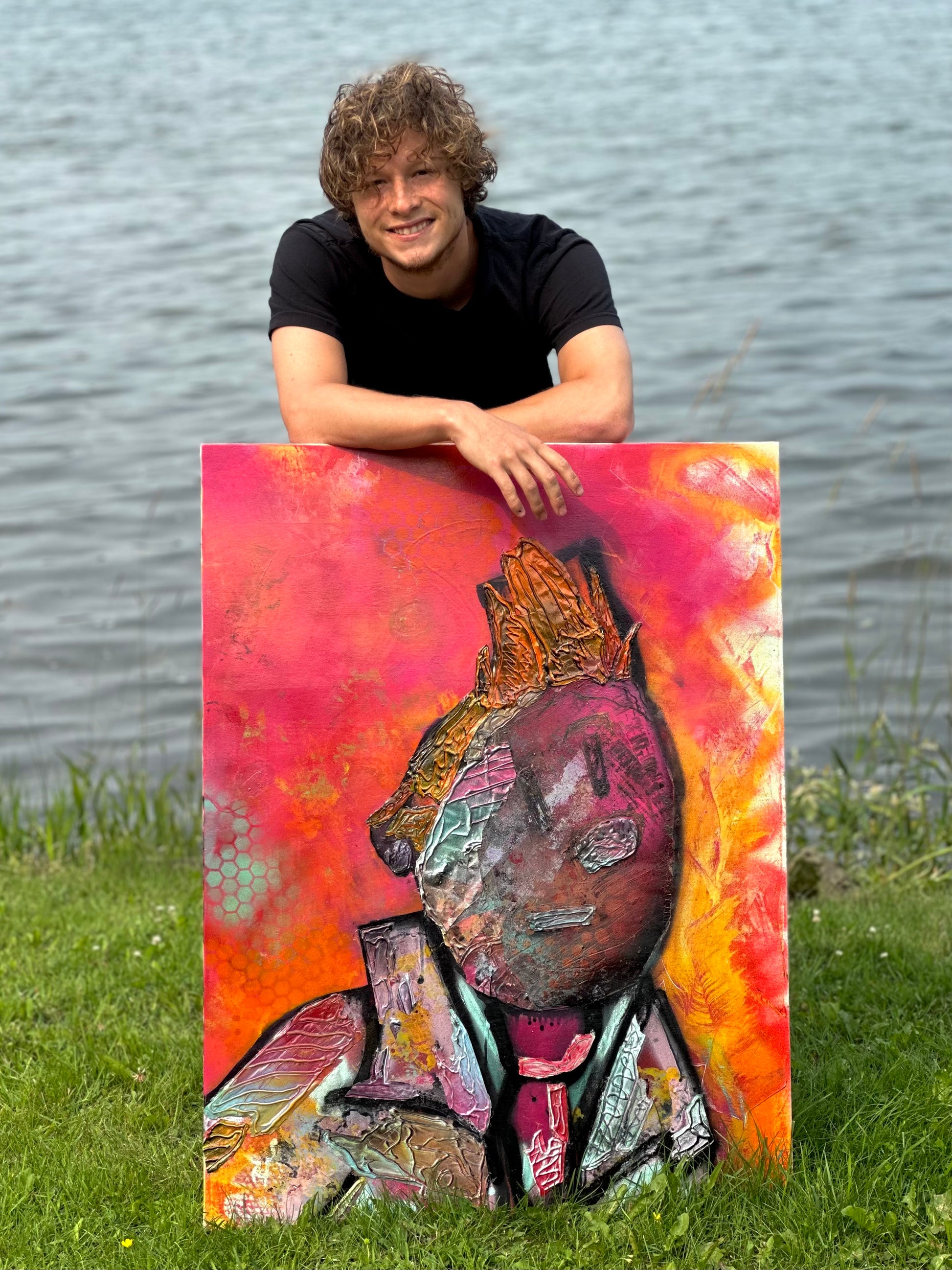 Cette œuvre 40x30 de Tintin est faite en aérosol et techniques mixtes.