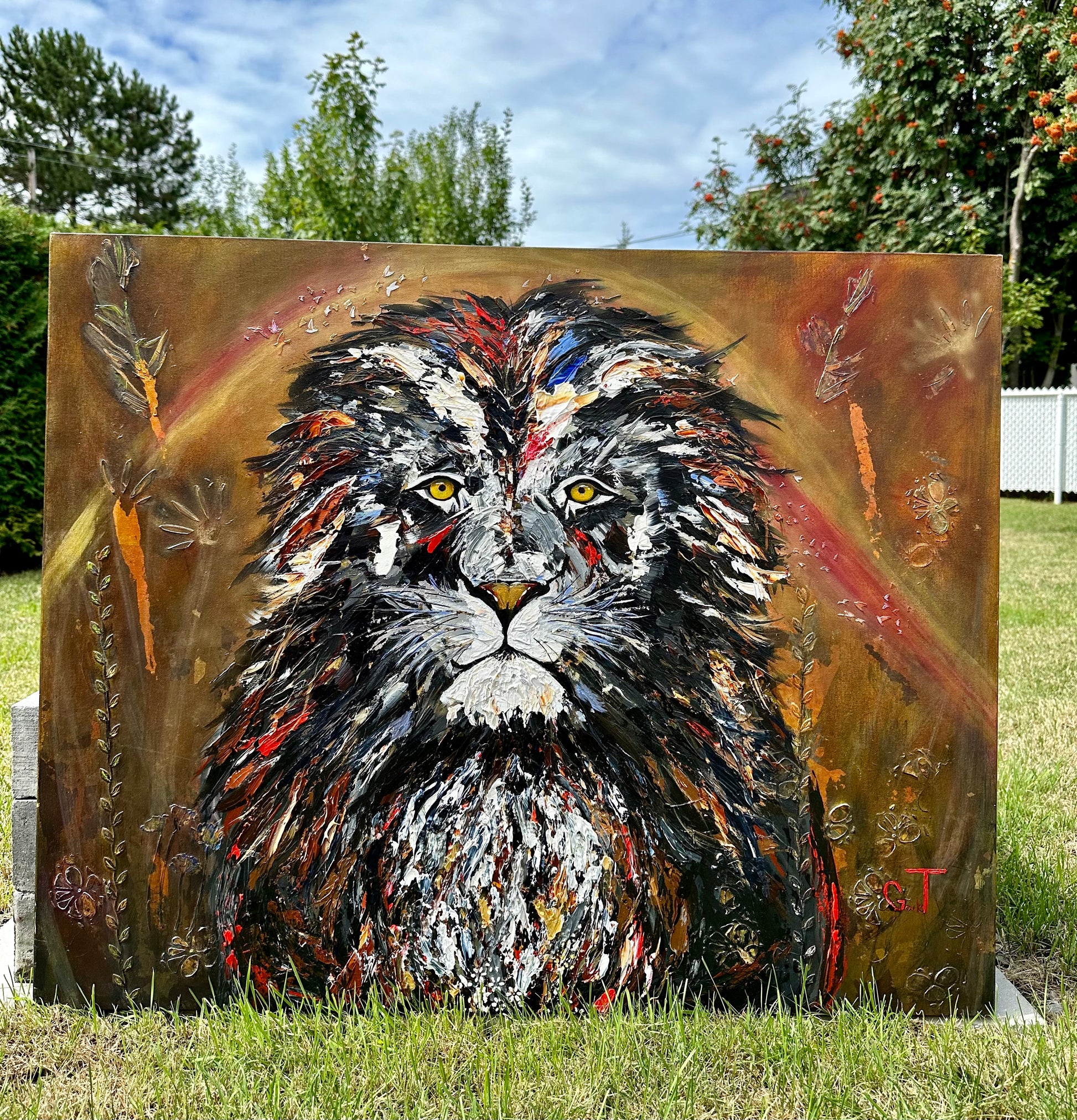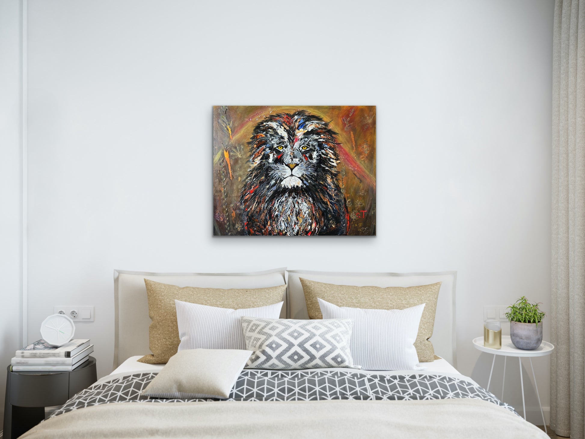 Le regard doux de ce lion m’a inspiré son titre. Le regard d’un prétendant.