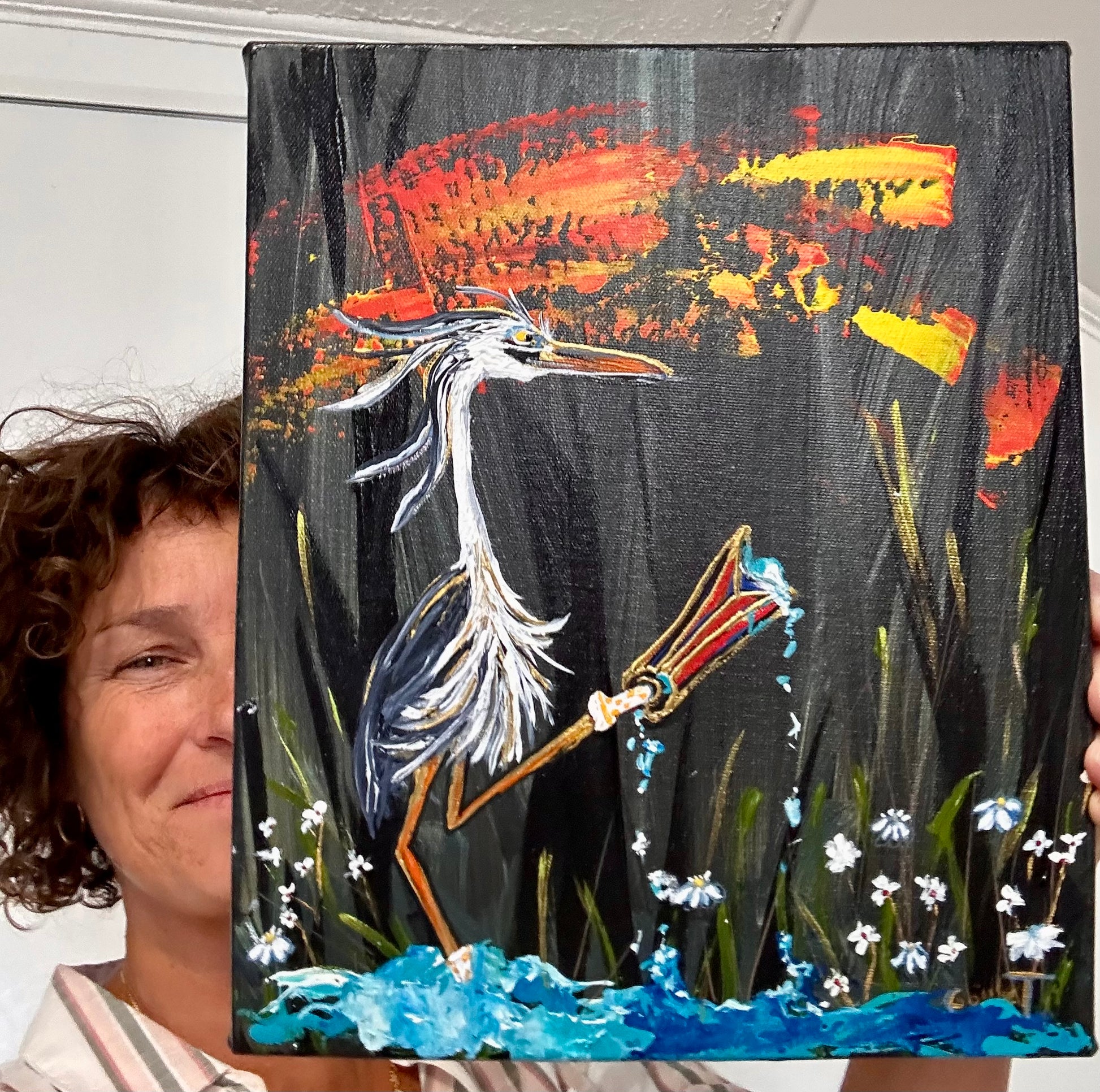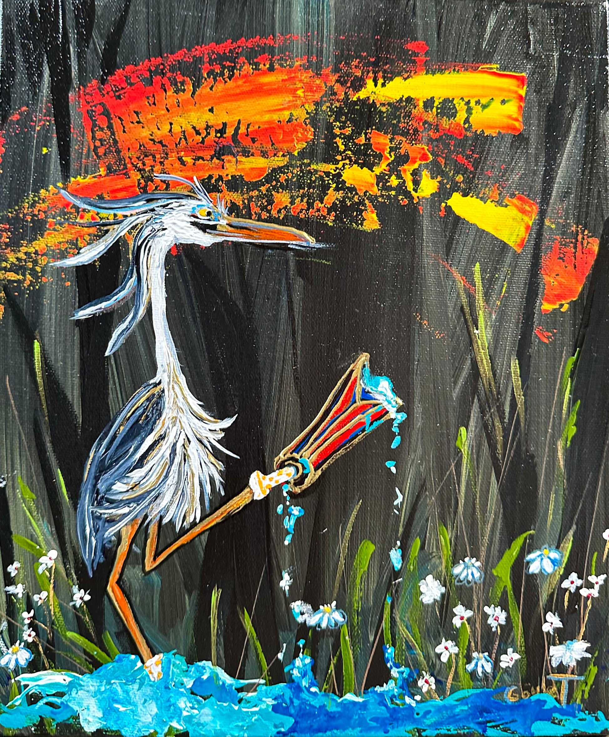 Une nouvelle œuvre de la série rigolote de hérons nageurs.