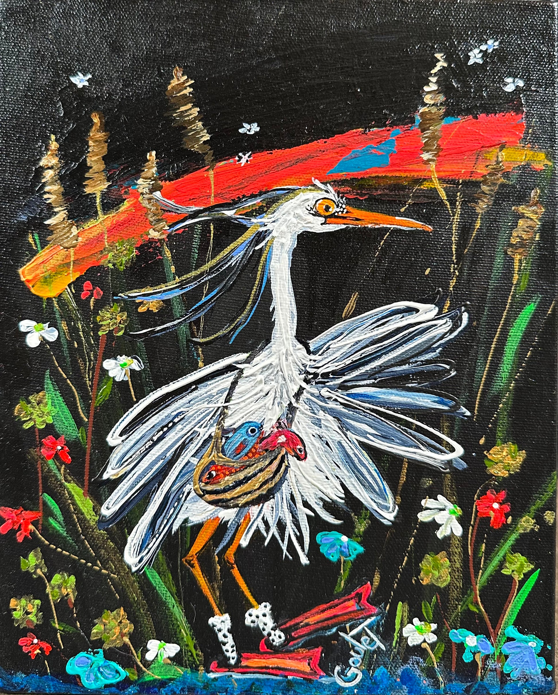Un nouveau petit héron à palmes et chaussettes. Celui-ci revient d’une pêche fructueuse et a de belles aventures à raconter!