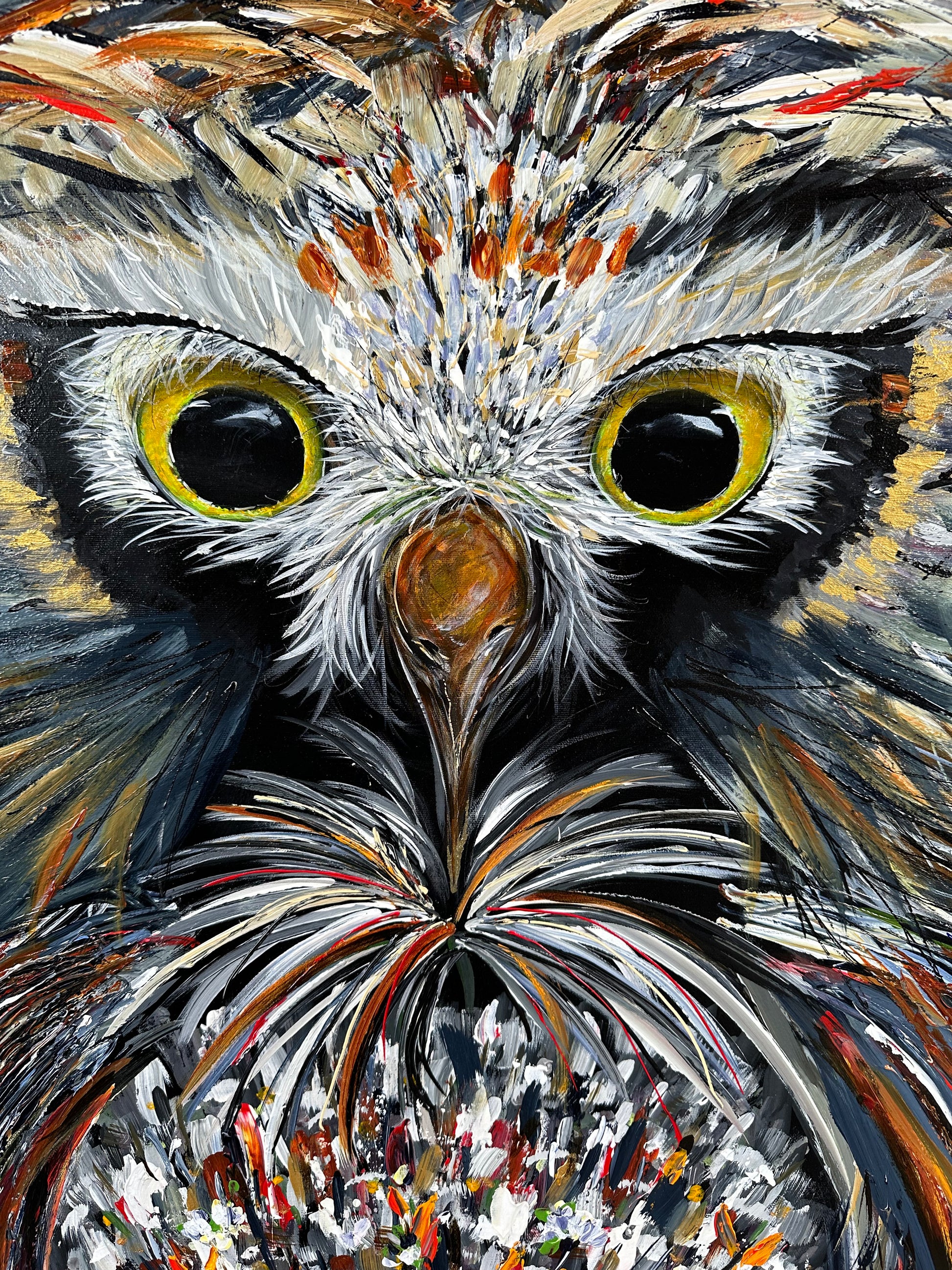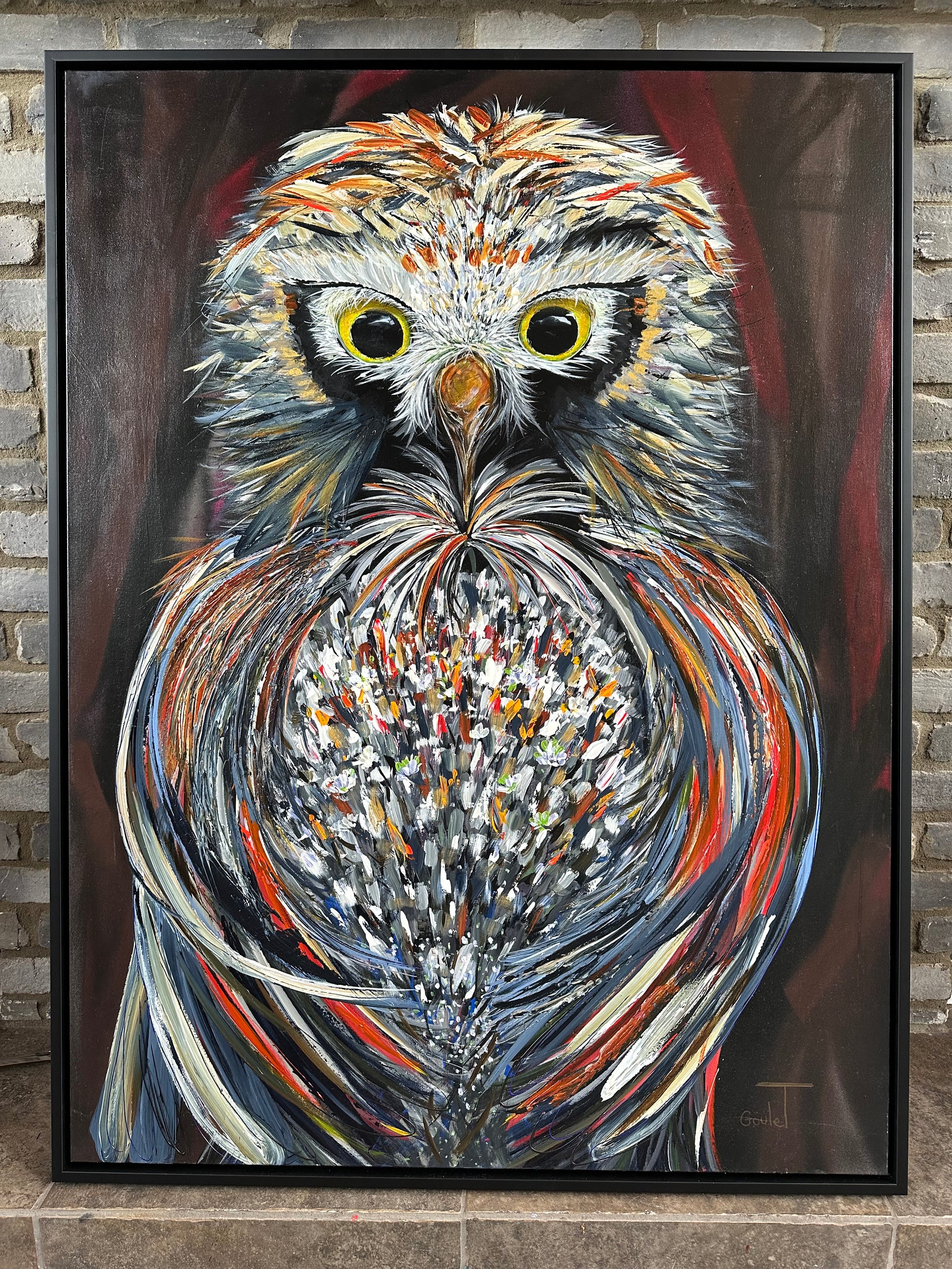 Un nouveau grand hibou de ma collection de hiboux facilement identifiables à un GouleT! Beaucoup de texture, une forme et une allure distinctives, beaucoup de personnalité, et dans ce cas-ci, de belles couleurs chaudes.